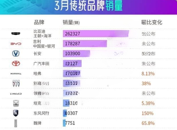 吉利汽车3月品牌销量为178287台,其中银河系列销售82744台,星愿为主要贡献力量;中国星系列销售95543台,星越L与星瑞组成的高端序列支撑了基本销量盘。4月吉利将迎来银河M7、银河A7纯电版、星舰7纯电版以及星耀7等多款新车集中上市,预计将进一步拉动销量增长。在传统阵营中,同比增速最为突出的是东风风行,3月销量同比增长150%,达到10307台,新能源MPV正在成为品牌新的转型突破点。魏牌3月销量为7751台,同比增长65.8%,高山系列成为品牌增长的核心引擎。后续魏牌还将推出大型SUV V9X,豪华体验与市场竞争力有望再度升级。