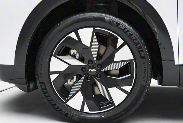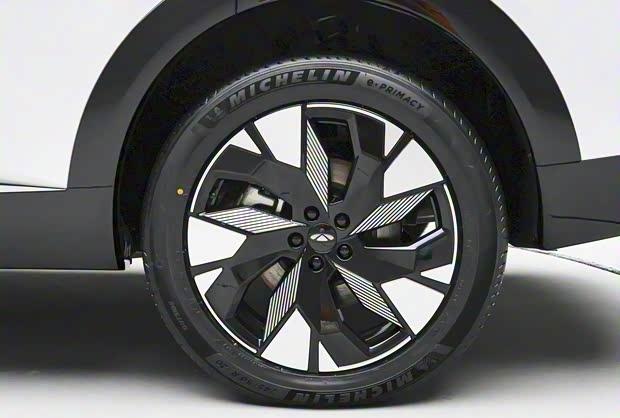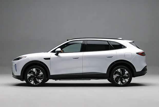 从车身侧面观察,其轮廓呈现出轿跑SUV的动感姿态。前后轮拱搭配了宽厚的黑色轮眉,装备了半封闭式低风阻轮圈以及半隐藏式门把手,有助于优化空气动力学表现。车辆的长宽高尺寸分别为4870毫米、1930毫米和1710毫米,轴距达到2920毫米。