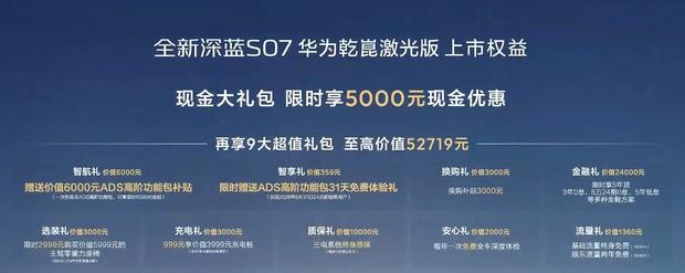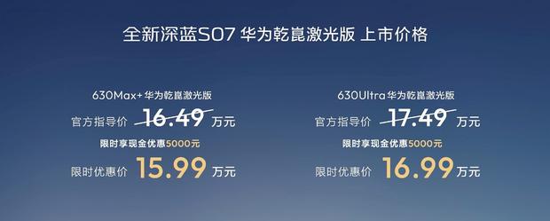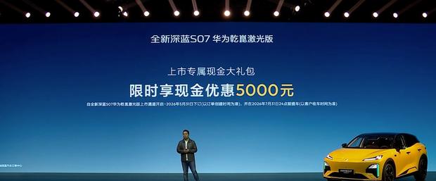 近日,深蓝汽车正式推出中型SUV深蓝S07的华为乾崑激光版,共发布两款配置,官方指导价分别为16.49万元与17.49万元。目前购车可享限时现金优惠,优惠后售价为15.99万元和16.99万元。此次新版本主要针对智能驾驶系统进行升级,搭载华为乾崑ADS 4 Pro辅助驾驶系统,官方称其在感知精度与智驾可靠性方面均有提升。