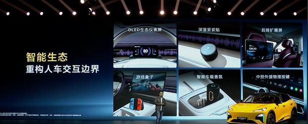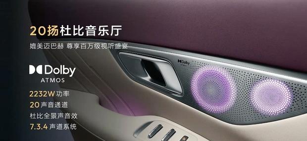 内饰部分,新车采用环抱式中控布局,配备双辐式方向盘、55英寸AR-HUD抬头显示以及15.6英寸悬浮式中控屏,该屏幕内置高通骁龙8295P芯片。此外,车内还搭载20扬声器杜比全景声音响系统,中控台下方设有手机无线充电板与双杯架,兼顾科技感与实用性。