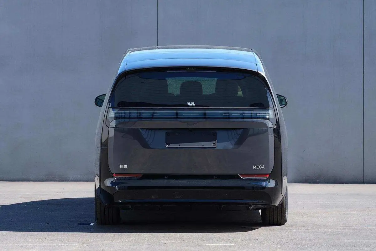 在车尾设计上,由于整个车顶都采用了弧形穹顶样式,这使得我们在尾部能够见到一个十分强烈的顶端下滑,而且跟车头的日行灯相呼应,理想MEGA的贯穿式尾灯组也隐藏布局在了后风挡结构之内,而在尾门结构上我们则见到了明显的双分区,这意味着车辆将有可能采用上下分区开启的设计,让实际的后备厢储物、载卸都更便捷。