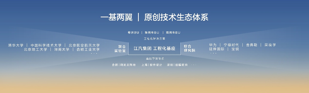 面向未来,江汽构建“一基两翼”开放式原创技术生态体系,以自身为工程化基座,一翼联动近20个顶尖院士团队与高校科研院所,聚焦原创技术突破;另一翼携手华为、宁德时代、舍弗勒、采埃孚等全球顶级供应链伙伴,共建联合研究院,推动首发技术快速工程化落地,形成研发到产业化的完整闭环。