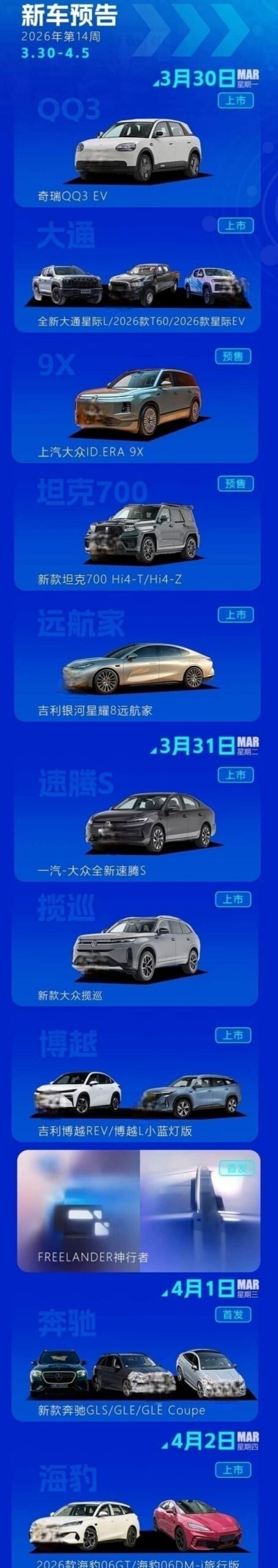 近期车市动态:多款新车即将亮相