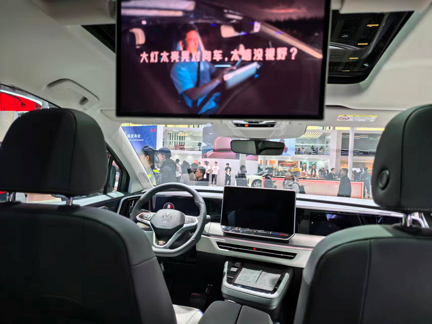 座舱内部,全新揽巡将数字化高科技世界与舒适柔软的豪华材料相融合,体现了高端的设计理念。15寸大型悬浮中控屏幕和11.6寸副驾屏的搭配,让整体内饰数字科技感更加强烈。中控屏采用全触摸按键,搭配电镀质感外观装饰条,分辨率高达2240×1260,展现高级质感。副驾液晶显示屏采用全贴合一体黑设计,分辨率为1896×610,像素密度与中控屏保持一致,达到171 PPI,通过触摸电源按键和屏幕可实现开闭。
