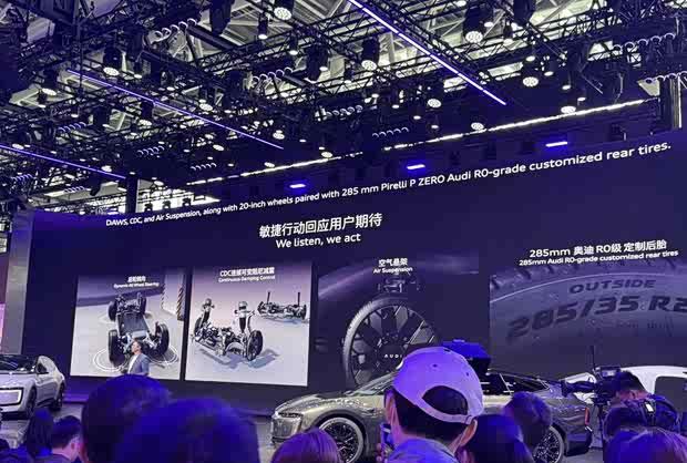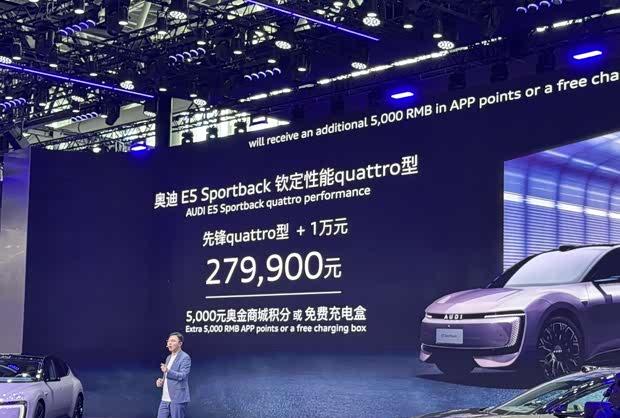 作为奥迪品牌战略车型,E5 Sportback于今年9月正式投放市场。此次推出的特别版本在先锋quattro型基础上进行配置升级,外观延续现款车型设计语言,配备可发光3D立体悬浮式品牌徽标。相较于顶配车型,该版本在迎宾灯语、矩阵式大灯、调光天幕、电吸门、超纤内饰及模拟声浪等配置方面进行调整,同时取消了w-HUD平视显示系统及松林绿、星际白内饰等选装项目。