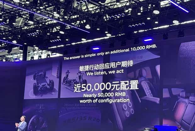 动力系统采用前后双电机智能四驱布局,最大输出功率达525马力,峰值扭矩725牛·米,匹配83千瓦时三元锂电池组。车辆标配包含空气悬架系统、CDC连续可变阻尼减振器及后轮转向功能在内的价值2.5万元性能套件。