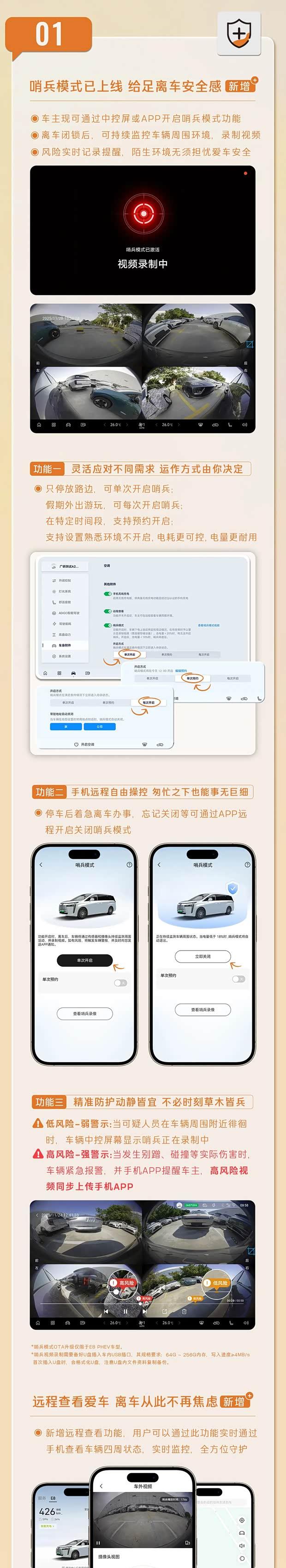 近日,广汽传祺旗下插电混动车型传祺E8 PHEV正式推送新一轮OTA软件升级。本次更新重点围绕安全防护、交互便捷性与用车体验展开,引入了备受关注的哨兵模式,并增添了远程查看车辆环境、微信位置直达导航等新功能,同时对车机界面进行了优化调整。