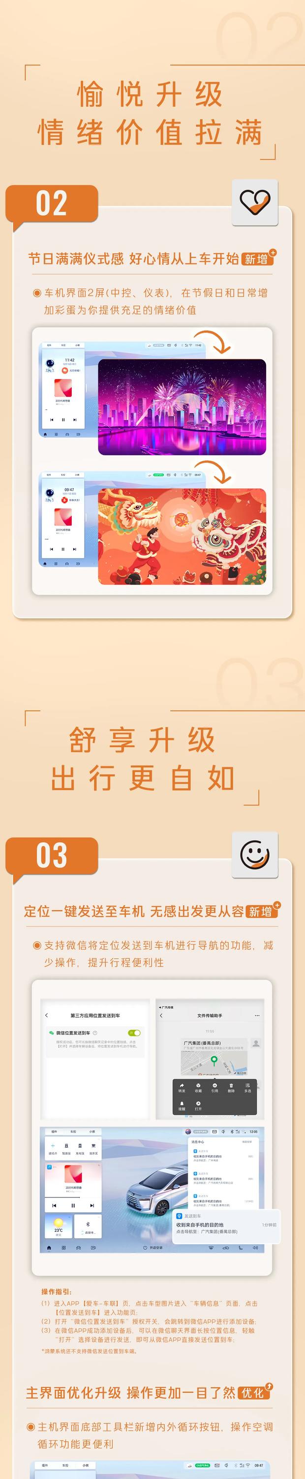 在交互与便利性方面,本次升级实现了微信位置信息一键发送至车机的功能。用户在官方应用程序中完成授权后,只需在微信聊天中长按位置信息,选择“打开”并指定对应车辆,即可将目的地同步至车机导航系统。整个流程设计简洁,基本三步即可完成。此外,车机操作界面也得到改进:主界面底部工具栏增加了内外循环切换按键,使空调循环操作更为直观;同时,中控屏与仪表盘在节假日等特定时段会展示“元旦纳福”、“新春大吉”等主题界面元素。