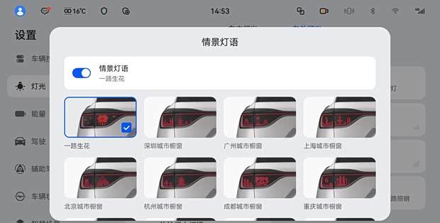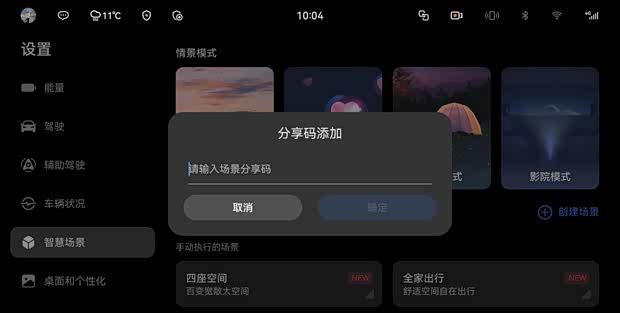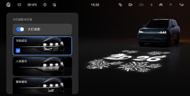 在座舱氛围营造上,部分装配百万像素智慧投影大灯的车型,新增了包含烟花动画、骏马图案等元素的“马到成功”迎宾灯效。情景灯语也新增了“一路生花”小红花样式及更多城市橱窗图案。此外,系统还新增了多种主题壁纸、屏保以及智慧场景的跨车型分享功能,用户可通过分享码一键获取他人创建的便捷场景。