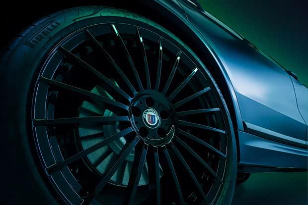车身侧面装配了23英寸经典造型的锻造轮圈,B柱处配有激光蚀刻的MANUFAKTUR字样。车尾部分同样设有ALPINA品牌标识,彰显其特殊身份。
