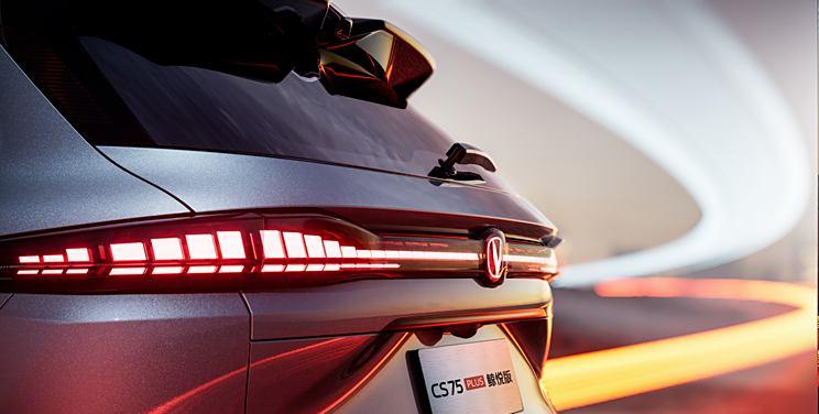 在外观设计上,CS75PLUS鲸悦版延续了在售车型的风格,但换装了全新的多辐轮圈,增添了时尚感。前脸采用了大尺寸倒梯形格栅,内部装饰有对称的V形点阵造型,与中央的长安LOGO相呼应。贯穿式LED灯带和两侧的三条平行日间行车灯,配合可点亮的车标,营造出强烈的未来感。车尾部分,新车采用了流行的贯穿式尾灯和双边共四出排气管设计。车身尺寸为4770/1910/1695mm,轴距达到2800mm。