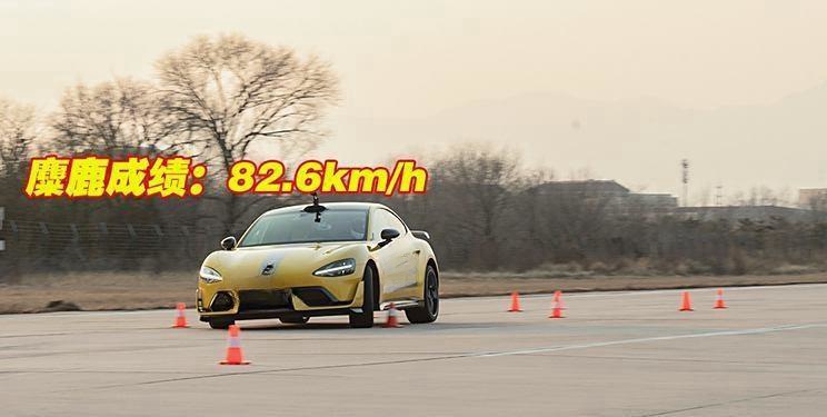 在麋鹿测试中,小米SU7 Ultra同样表现出色。无论是经济模式还是标准模式,车辆的动态响应都极为灵敏准确。方向盘转向力度适中,适合大多数驾驶者。虽然车辆在进入B区时表现出轻微转向不足,但在辅助系统的帮助下,整体操控稳定,未出现多余滑动。辅助系统的介入时机较晚,强度轻微,主要依赖轮胎的机械抓地力完成测试,最终成绩达到82.6km/h。
