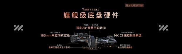 底盘系统采用灵蜥数字底盘3.0技术,后轮随动转向功能将转弯半径控制在4.95米。配备双腔闭式空气悬架与电控阻尼减振器,配合数字牵引力控制系统,有效提升操控稳定性和通过性。智能驾驶硬件搭载520线激光雷达,最远探测距离300米,配合英伟达Drive AGX Thor芯片及momenta软件系统,支持城市无图NOA功能。