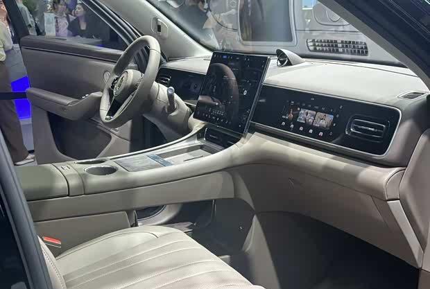 PP内饰采用浅棕色材质包裹,配备独立三屏系统,包括内嵌式副驾娱乐屏、全液晶仪表和AR-HUD抬头显示。新车换装全新三辐式方向盘与怀挡换挡机构,中央控制区配备双无线充电板、杯架及星环散射体音响系统。此外,新车还提供主驾零重力座椅、后排娱乐屏、车载冷暖箱及流媒体后视镜等豪华配置。