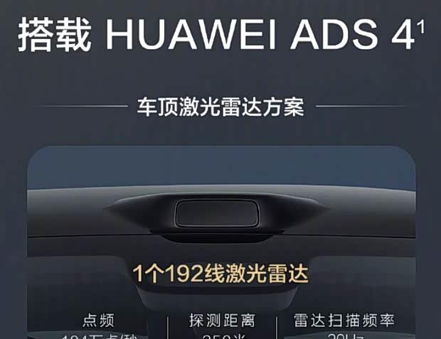 PP智能驾驶方面,新车搭载HUAWEI ADS 4辅助系统,全系标配激光雷达,提供两种传感方案。高配版本采用车顶192线激光雷达+后向固态激光雷达+5个4D毫米波雷达的组合。