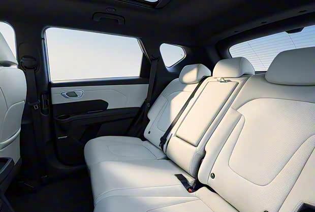 内饰配置上,阶梯式设计中控台配备27英寸4K双联屏,搭载高通8295P芯片。采用怀挡设计的中控区域设有丰富的储物空间及手机无线充电功能。座椅采用仿麂皮材质包裹,前排配备加热通风功能,主驾驶席带有主动侧翼支撑。后排座椅支持28度调节和4/6比例放倒,后备厢容积可从506升扩展至1540升。