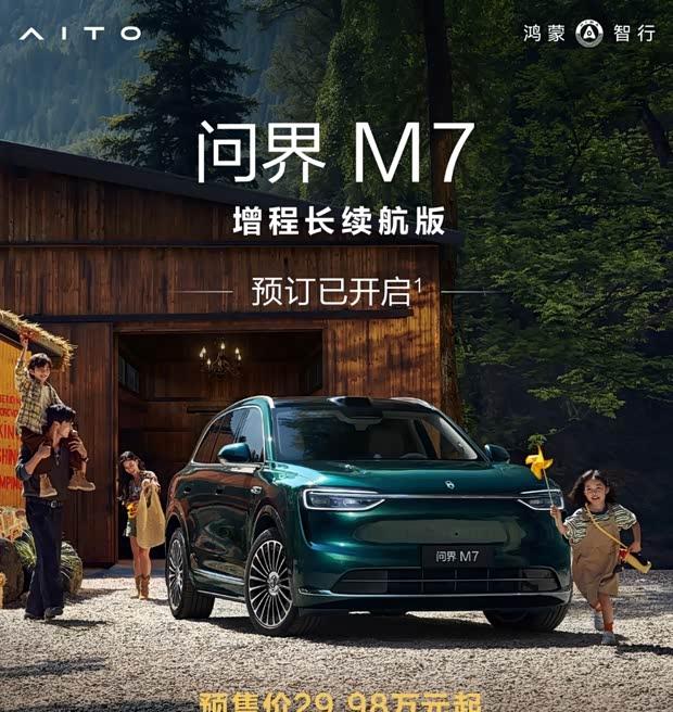 问界M7系列推出增程超长续航版本,现已启动预订。其中,五座版Max车型预售价为29.98万元,六座版Max车型预售价为31.98万元。预订用户可享2000元抵扣5000元购车款的权益。截至目前,问界M7全系车型累计交付量已突破40万辆。