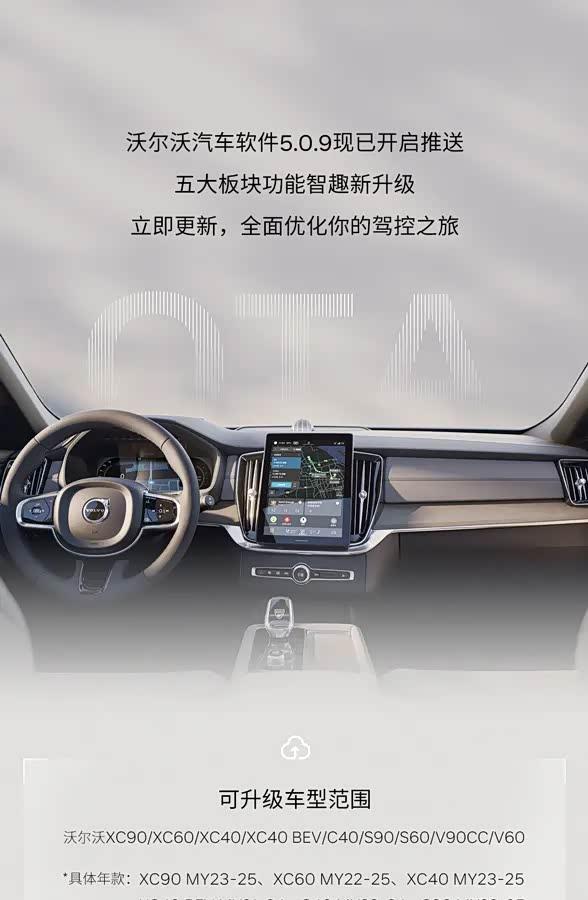 沃尔沃汽车近日正式向旗下多款车型推送了最新的软件5.0.9版本更新。此次升级涉及五大功能模块,旨在全方位提升用户的驾驶与乘坐体验。适用车型包括XC90、XC60、XC40、XC40纯电版、C40、S90、S60、V90 Cross Country以及V60。
