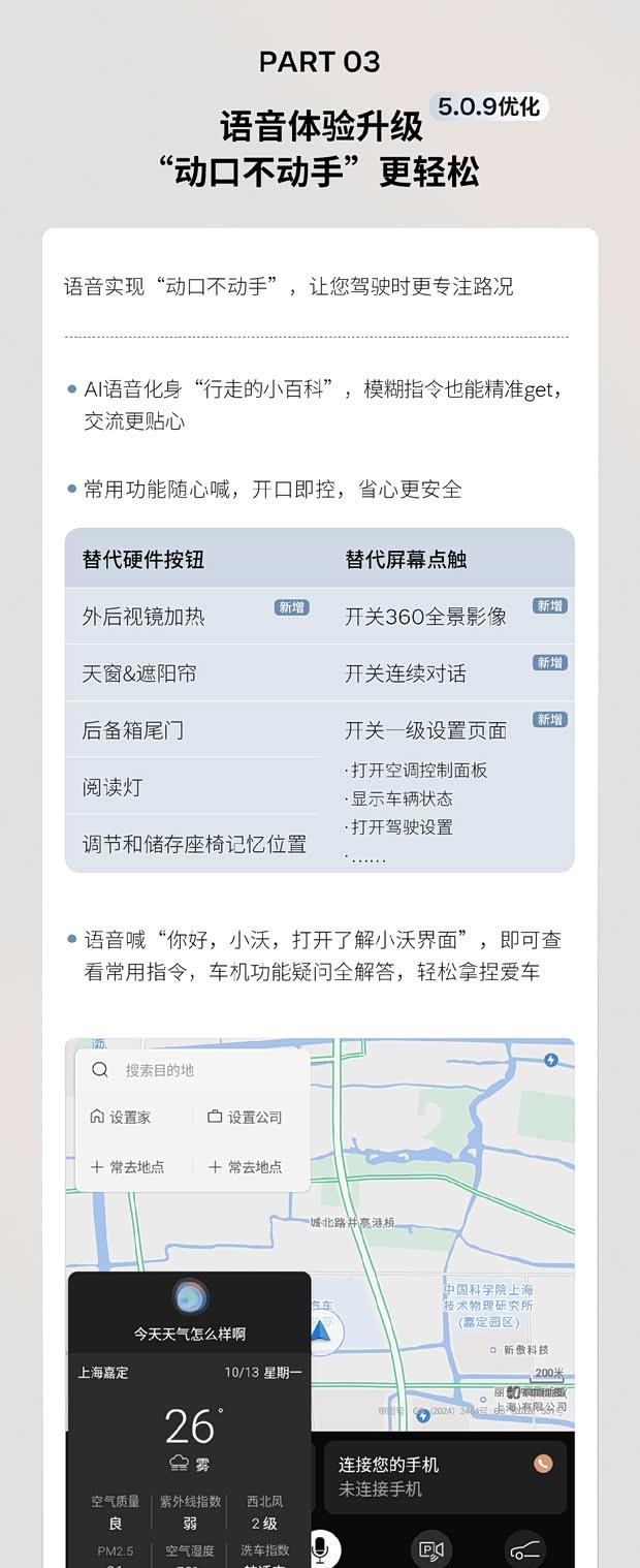 智能语音助手的能力也得到了进一步拓展。如今,它能够更准确地理解用户的模糊指令,实现更自然流畅的交互。通过语音指令,用户可以直接控制多项车辆功能,例如后视镜加热、天窗与遮阳帘、后备箱尾门、阅读灯以及座椅记忆调节等,减少了手动操作的步骤。同样,像开关360度全景影像、设置页面等原本需要通过屏幕触控的操作,现在也可通过语音完成。用户还可以通过特定语音指令调出帮助界面,快速了解常用的语音控制命令。