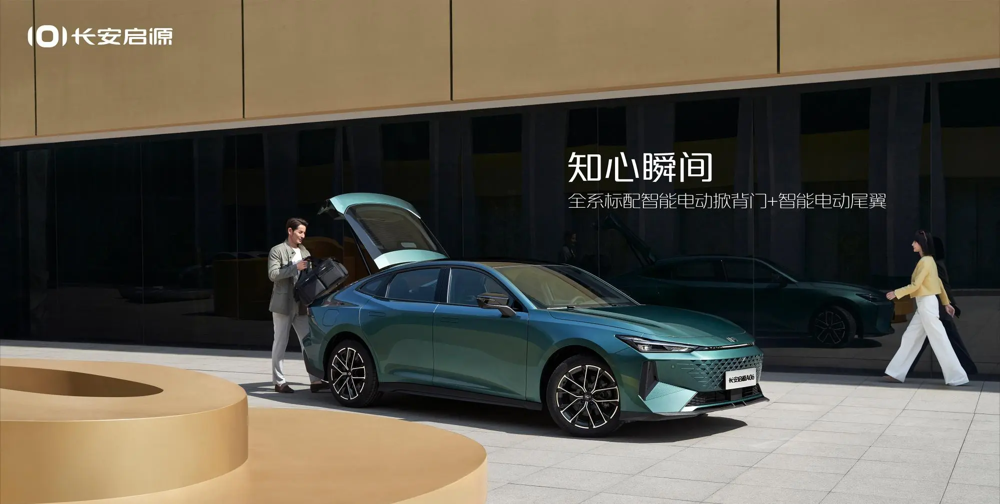 新车长宽高分别为4720x1838x1435 mm,轴距2750 mm,定位于插电式混合动力紧凑型车。外观方面,新车基于UNI-V打造而来,配备长安UNI-V同款LED大灯和无边界进气格栅,中间加入贯穿式日行灯带。车侧采用双腰线设计,提供全新样式的运动轮毂,并配有隐藏式电动门把手。尾部可选中置双出或双边双出排气造型,上方保留可升降式扰流板。