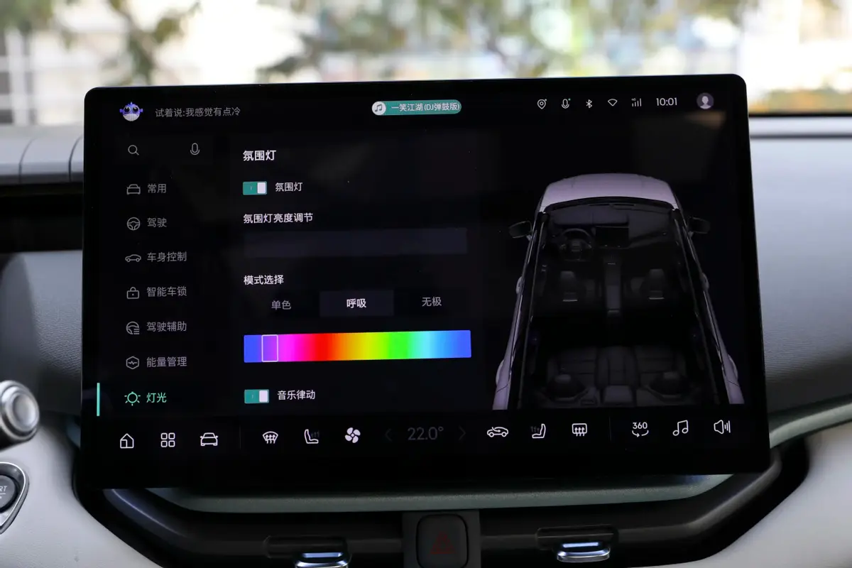 当来到顶配Halo车型上,配置上除了标配选装的配置之外还在长续航Pro的基础上增添了感应式电动后备箱、蓝牙钥匙、全车车窗一键升降防夹手、前排无线充电、腰部支撑、前排座椅加热、驾驶位座椅记忆、多色氛围灯等等配置。