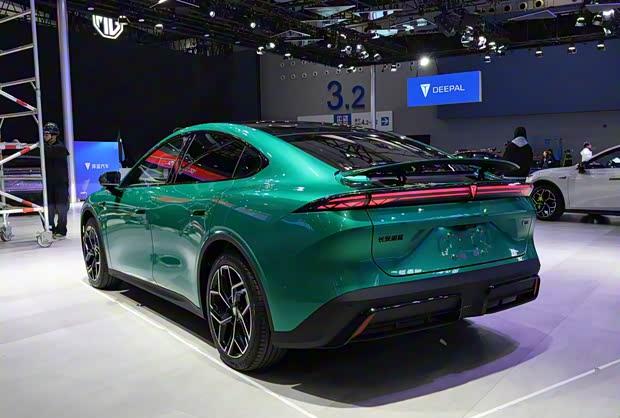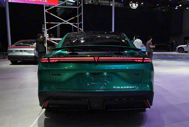 侧身轮廓采用低风阻溜背造型,翼子板微宽体设计增强视觉张力。19英寸轮圈搭配可选色卡钳,配合机械式半隐藏门把手。车身长宽高分别为4830/1905/1480毫米,轴距达2900毫米。车尾配备随速电动扰流板,可在时速超90公里时自动开启,超过120公里进入高下压力模式,最大提供260牛下压力。用户还可手动调节10档尾翼角度,该功能后续将通过在线升级实现。全系标配464升电动后备厢。