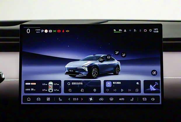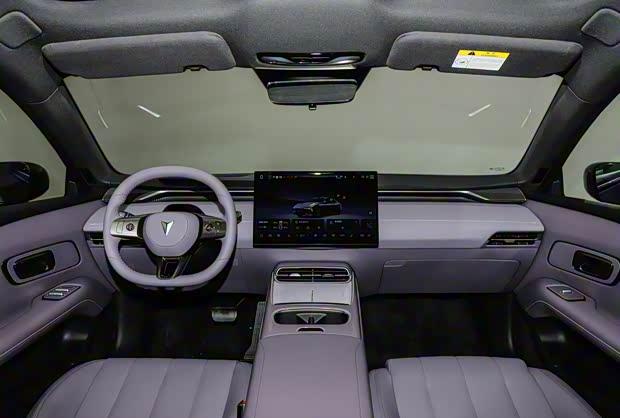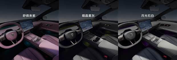 内饰采用撞色刺绣工艺,软质材料覆盖率达90%,座椅使用环保PU柔性面料。提供三种内饰配色方案:舒俱来紫、烟晶雾灰与月光石白。15.6英寸2.5K中控屏支持13度智能偏转,50英寸AR-HUD抬头显示系统与3纳米座舱芯片保障系统流畅运行。前排座椅标配通风加热功能,副驾配备零重力座椅支持14向电动调节与8点按摩。全系搭载热泵空调,1280瓦功率的18扬声器组成7.1.4声道音响系统,256色分区氛围灯支持无麦K歌功能。