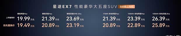 星途品牌旗下全新战略车型EX7于近日正式推向市场,标志着该品牌正式迈入3.0产品时代。此次新车共发布6款配置,价格区间为19.99万元至26.39万元。在限时购车权益期内,用户还可享受抢先置换价,区间为19.49万元至25.89万元。据悉,在指定日期前完成订车的用户,能够享有包括5000元置换补贴、特定金融方案、老车主额外补贴以及高级辅助驾驶系统限时终身免费等多重礼遇。