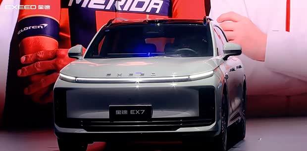 从设计上看,EX7采用了时下流行的极简风格,线条流畅且富有科技感。车头部分以贯穿式日行灯和分体式大灯为特征,配合细节处的镀铬装饰,增添了精致度。车顶位置清晰可见激光雷达装置。车身侧面造型硬朗,隐藏式门把手与大尺寸轮圈是其显著特征。其车身长宽高分别为4988毫米、1975毫米和1710毫米,轴距达到了3000毫米,为车内空间提供了良好基础。车尾同样采用了贯穿式灯组设计,与车头形成呼应。新车提供了星海蓝、星云绿等共计六种外观颜色。