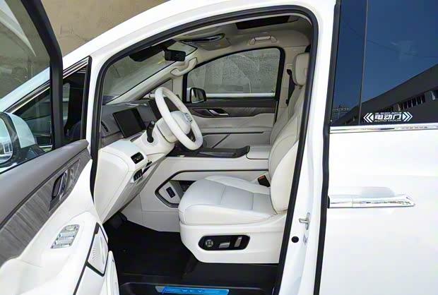 作为家用MPV,该车采用2+2+3座椅布局,二、三排座椅采用共轨设计提升空间灵活性。第二排配备活动扶手与加热通风功能,可选装悬浮式零重力座椅,第三排支持靠背角度调节。针对家庭使用场景,后排配备双层踏板与分段式扶手,二、三排侧窗配备遮阳帘,后备厢设有220V电源接口,并搭载17.3英寸娱乐屏与车载冰箱。
