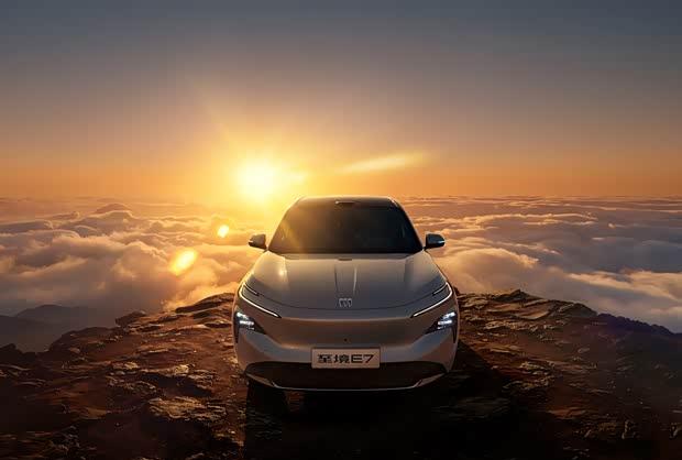 从设计上看,至境E7延续了概念车的“展翼元素”理念,前脸采用分体式星河展翼大灯与驭风鲨鱼造型相结合,提升了整体辨识度。车顶配备激光雷达,支持“逍遥智行”辅助驾驶系统,依托Momenta R6强化学习大模型,可实现全场景辅助驾驶功能。智能座舱方面,新车将搭载高通骁龙8775P芯片。