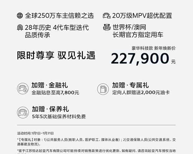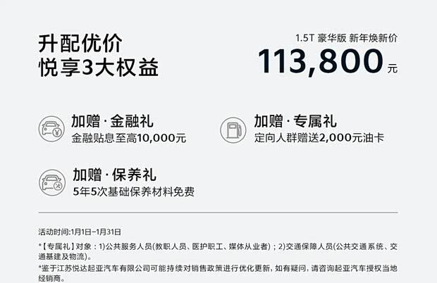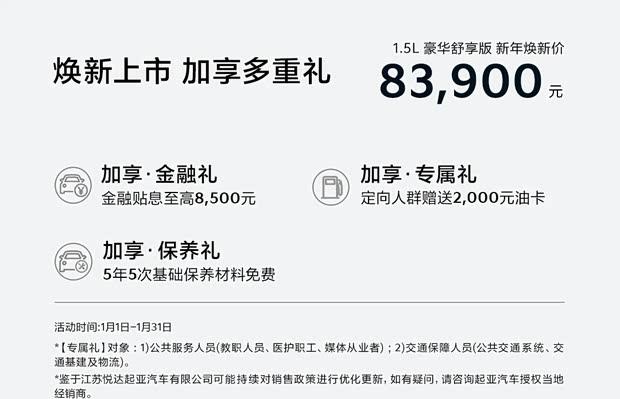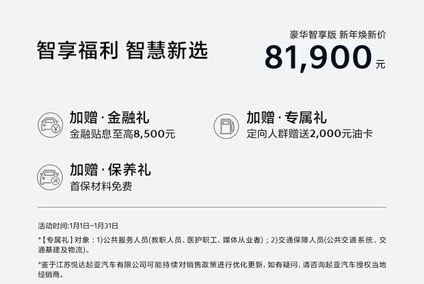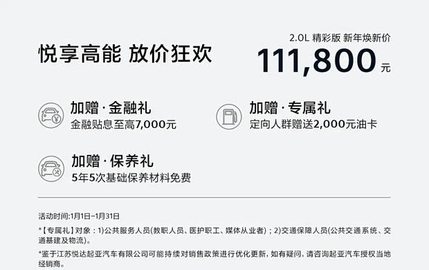 除直接的价格优惠外,官方还同步推出了包括金融支持、保养服务及专属礼遇在内的多项购车礼包,进一步丰富消费者的购车选择。有业内人士指出,此类季节性促销活动有助于在年初提振市场关注。本次优惠详情以各地授权经销商最终公布信息为准。