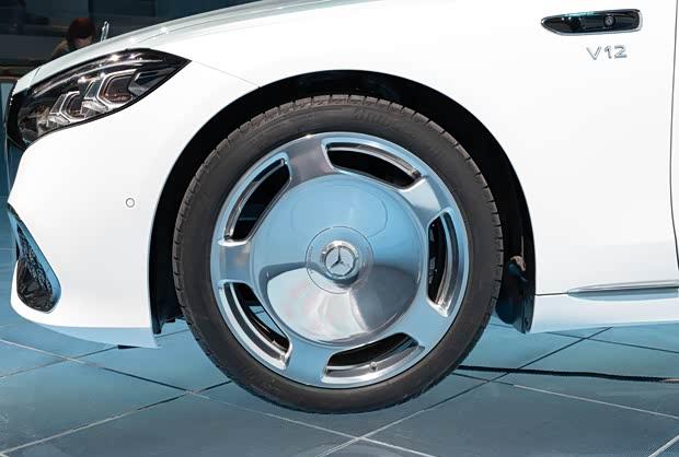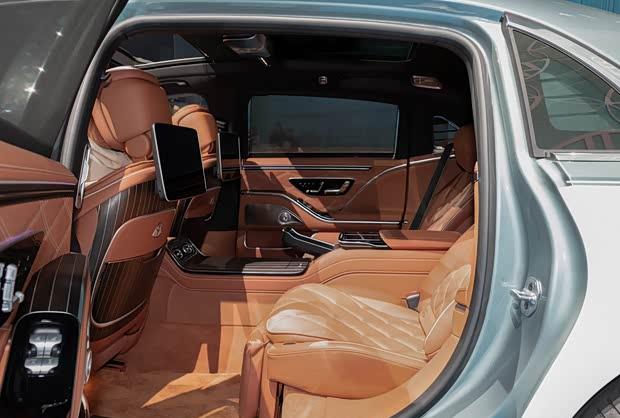 车身侧面,新车配备了可投射“MAYBACH”字样的迎宾踏板。前排驾驶员能够控制后排车门的电动开闭功能。轮圈方面,新增了20英寸多辐锻造款式与21英寸金色MANUFAKTUR定制款式,确保轮心徽标始终保持直立。车尾部分,分段式尾灯内嵌三枚星徽装饰,与前大灯设计呼应。后扰流板采用镀铬与亮黑色分段式双色饰条。经典的迈巴赫双色车漆由工匠手工喷涂,每台车耗时约一周完成。新增的“极夜风格组件”提供了包括全新海岳蓝色在内的多种漆面选择。
