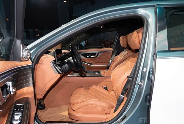 安全配置堪称周全。新车首创了前排加热式安全带,可在短时间内升温。全车共配备15个安全气囊,并额外增加了2个PRE-SAFE侧碰保护气囊与2个后排安全带气囊。PRE-SAFE系统能在侧碰风险前将乘员移向非撞击侧,同时车身控制系统可抬升车身以抵御冲击。后排还配备了正向安全气囊,在碰撞时与安全带气囊协同工作,扩大受力面积以保护乘员。