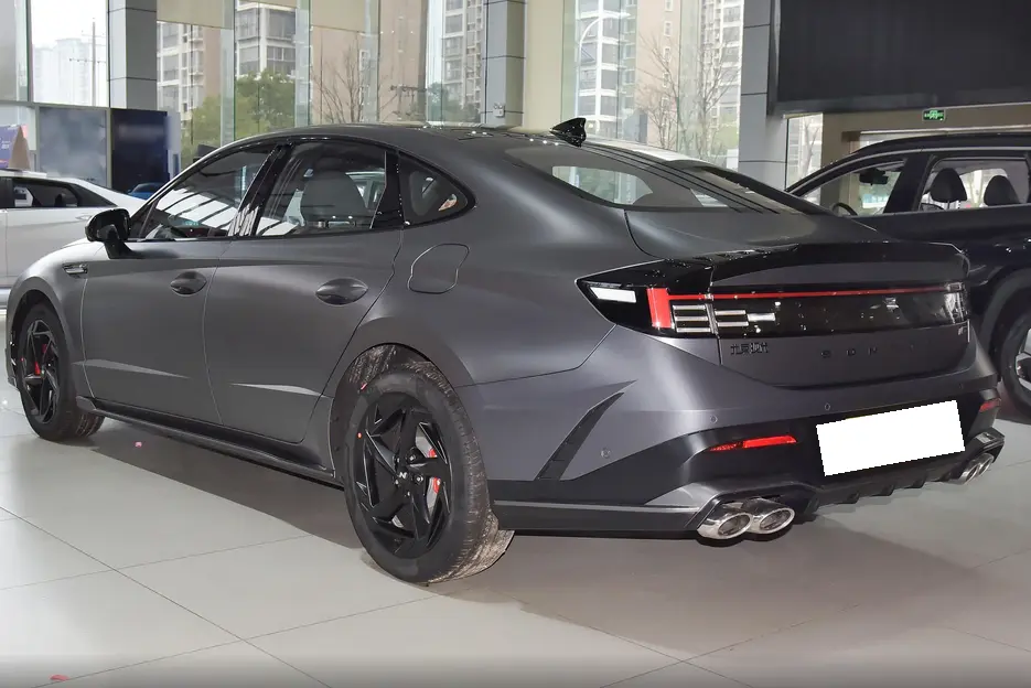 第十一代索纳塔大体还是扁平化的设计和造型,车身侧面的线条也比较流畅,其长宽高分别为4945/1860/1445毫米,轴距为2875毫米,对于一款中型车来说,第十一代索纳塔的尺寸也还可以,不过相比起很多同级别对手来说,第十一代索纳塔的轴距略微逊色一些。至于在车尾处,第十一代索纳塔除了采用平直的贯穿式尾灯以外,也采用和前脸遥相呼应的扁平化Logo,车尾上方有着小鸭尾设计,车尾下方则根据1.5T和2.0T版本的不同,分别采用隐藏式排气布局和双边四出排气布局,相比之下,显然还是2.0T的N Line版本会更加运动一些。