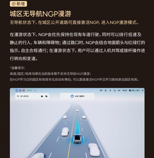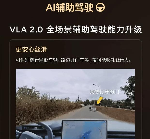 在智能驾驶方面,第二代VLA 2.0系统实现了多项功能提升。该系统能够准确识别并绕行异形车辆、路边开门车辆等特殊障碍物,夜间还可主动礼让行人,使复杂路况下的应对更贴近人类驾驶逻辑。此外,新增的城市无导航NGP漫游功能,允许车辆在未预设导航路线的情况下,于城区大路、小路自主通行,结合实时交通信号与路况进行自主决策,从而覆盖更多日常通勤场景。