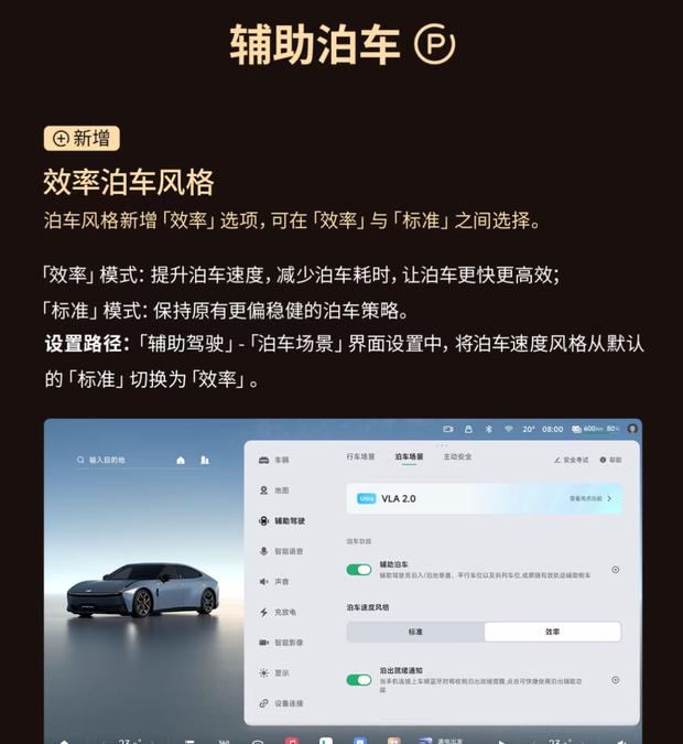 泊车与显示体验也得到进一步优化。升级后的系统改善了园区3D建模的显示效果,终点车位与收藏车位的呈现更加清晰。配合效率泊车功能,用户停车将更为便捷直观。同时,全场景辅助驾驶功能经过优化,提升了在复杂场景中的博弈能力,使行车过程更平稳,拥堵跟车、障碍避让等操作也更自然,有助于进一步提高日常通勤效率。