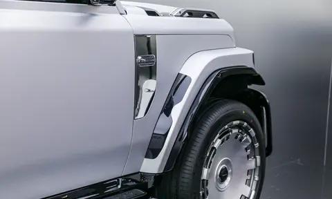 外观方面,iCAR V23 CYBERSPACE赛博版采用了超境汽车标志性的金属哑光银涂装,并在前格栅和轮眉等细节处加入了高亮黑配色。此外,该车还配备了新设计的前后保险杠、车顶LED射灯、车顶行李架以及碳纤维车顶扰流板。同时,它还搭载了亮面封闭式风格的铝合金轮辋。
