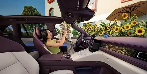 进入车内,新车采用紫色与白色相拼的内饰色调,突出年轻时尚风格。配备长条形全液晶仪表盘与D型多功能方向盘,中控区域搭载可左右旋转的大尺寸触控屏,副驾驶前方则设有窄边框娱乐屏,称为“副驾灵感橱窗”。此外,新车还提供一体式运动座椅、双无线充电面板、全景天窗、天空声道音响、HUD抬头显示及星环散射体等丰富配置。