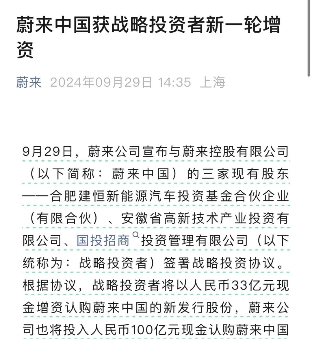 蔚来创始人、董事长、CEO李斌在2024全球智能汽车产业大会上回应了蔚来在亏损状况。他表示,公司去年的研发投入是134亿人民币,现在每个季度的研发投入是30到40个亿人民币,而这样一个研发投入的强度是非常高的。尽管自成立以来,蔚来一直处于亏损状态,但它善于融资,2023年下半年,蔚来从阿布扎比基金融资约30亿美元,截至2024年6月30日,蔚来持有的现金及现金等价物、受限制现金、短期投资及长期定期存款为416亿元。9月29日,蔚来中国获得战略投资者的新一轮融资,合肥建恒、安徽高新投、国投招商将对蔚来中国增资33亿元人民币,蔚来上市公司也将对蔚来中国增资100亿元。对此,李斌表示感谢,认为这不仅是对蔚来的信任,还是对中国智能电动汽车高质量发展的坚定信心的体现。