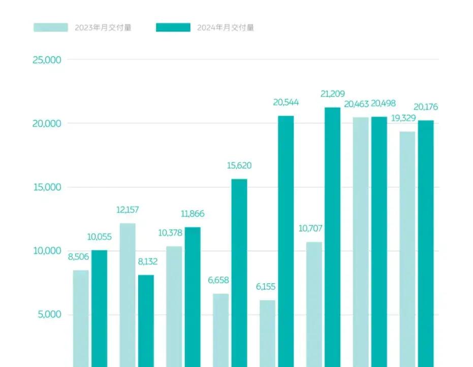 同时,蔚来的销量也获得了一定的增长。数据显示,2024年8月,蔚来交付新车20,176台,连续4个月超过2万。今年1-8月,蔚来共交付新车128,100台,同比增长35.77%。虽然在今年的第一季度,蔚来销量处于不小的波动中,但从五月份开始,蔚来的销量逐渐走出低谷,稳定在2万辆水平。