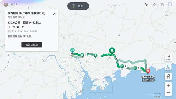导航系统新增途经点编辑与排序功能,允许用户在路线规划中最多添加16个途经点,并支持实时调整顺序,便于灵活响应行程变化。同时,系统还支持将高速服务区信息快速添加为途经点,优化长途行车规划。