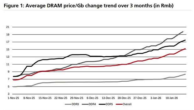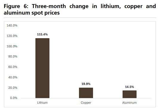 首先是原材料成本攀升。根据瑞银近期发布的研究报告,过去三个月,铝、铜等金属价格上涨,导致单车材料成本增加。其中波动最为显著的是锂价,以搭载80度电池的纯电动车为例,仅锂成本一项就上涨约3800元。有行业人士指出:“到2026年,车企面临的最大成本压力可能并非来自电池。” 瑞银报告进一步揭示,智能汽车的内存成本因价格暴涨而大幅增加,过去三个月内存价格涨幅达180%,使得每辆车的相关成本提升约1300元。综合计算,每辆车的制造成本因此增加了4000至7000元。