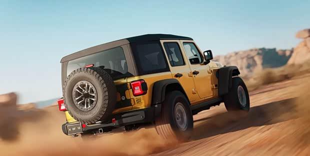 外观部分,该车采用沙漠黄色涂装,前保险杠为钢制结构,两侧整合LED照明系统。经典的七孔格栅得以保留,并加装油水分离进气罩,发动机盖饰有专属Willys拉花。车身维持四门布局,车顶支持手动拆卸,宽体轮眉搭配17英寸防脱轮圈及35英寸百路驰KO2越野轮胎,离地间隙达到282毫米。