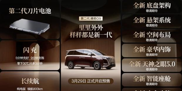 腾势D9新款预售:综合续航超1300km,充电15分钟补能350km