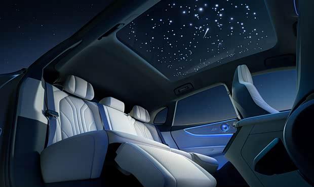 车顶创新搭载“浩瀚星空顶”设计,在LV分区调光天幕中嵌入500颗独立星粒,整体厚度仅增加1毫米。用户可一键点亮专属星座图案,配合迎宾与节日彩蛋等场景模式。该天幕具备87%的能量隔绝效率与近100%的紫外线阻隔能力。