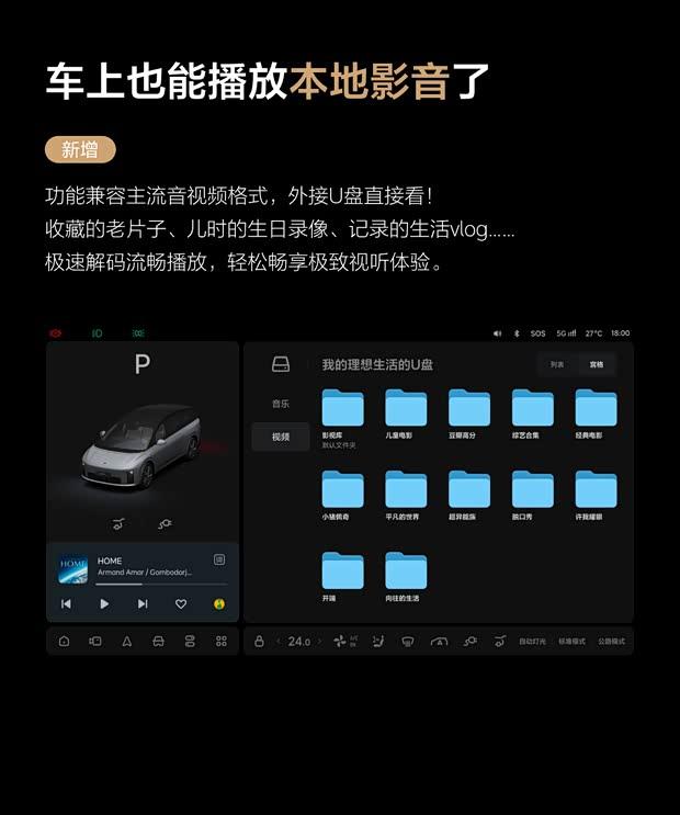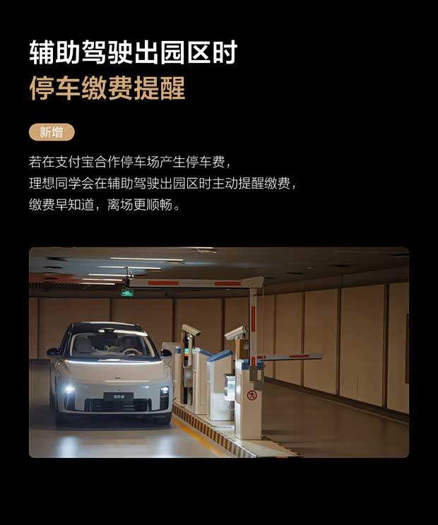 针对理想MEGA、理想i系列及L系列全部AD Max车型,升级内容包括辅助驾驶驶出园区时的停车缴费提醒功能。此外,理想MEGA、理想i系列与L系列车型均新增理想超充站状态实况展示,并支持本地影音播放与Unity游戏虚拟手柄。