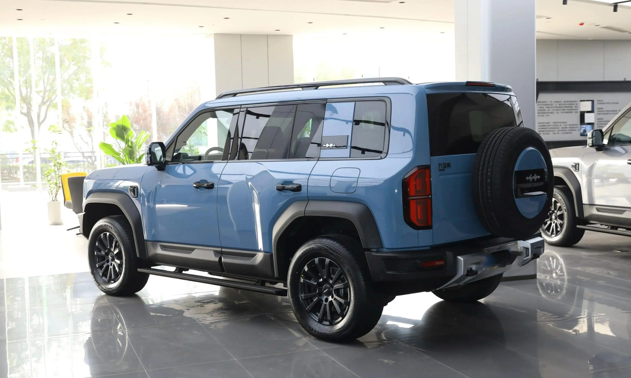 方程豹5采用了“豹力美学”设计理念,车身配备方形外后视镜、传统造型门把手、黑色轮眉和防擦板,同时前后还配备了拖车钩。车身尺寸为4890/1970/1920毫米,轴距为2800毫米。