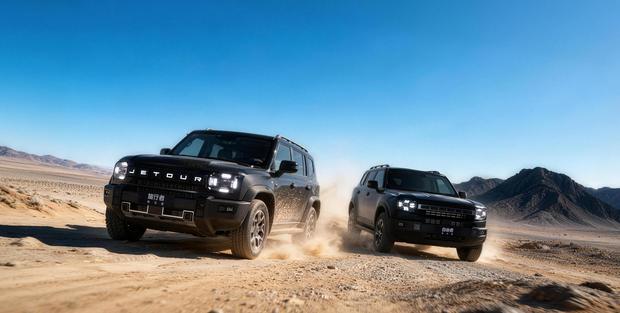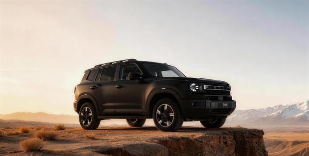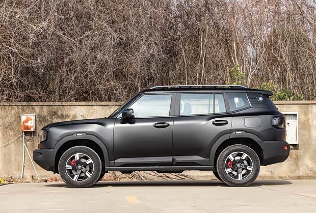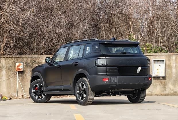 新车作为马年限定版本,采用了专属的骊影黑哑光车漆,并搭配红色制动卡钳,形成了鲜明的视觉对比。整车延续了方盒子的硬朗造型风格,前脸配备熏黑方形轮廓一体式大灯,中央饰板镶嵌捷途英文标识,配合粗壮的前保险杠,越野气息浓厚。车身侧面,强化后的轮眉与侧踏板进一步突出了力量感,悬浮式车顶设计则增添了时尚元素。车辆尾部设计与前脸相呼应,同样采用方形尾灯与宽大的后保险杠。