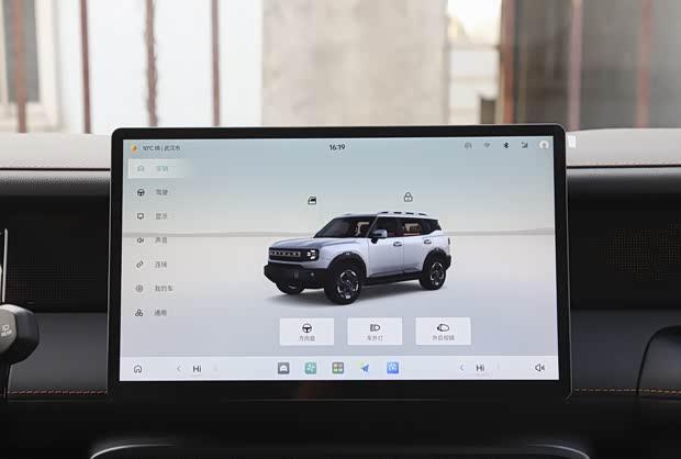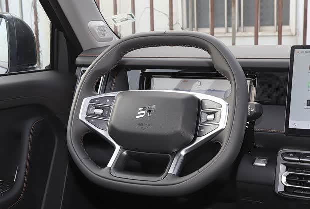 进入车内,新车内饰同样强调越野风格。副驾驶前方设置了实用的扶手,方向盘握感扎实,立体造型的排挡杆与机械感十足的旋钮共同烘托出硬派氛围。科技配置上,车辆搭载了15.6英寸中控屏幕,内置高通8155芯片,支持CarPlay、Hicar手机互联以及四音区语音识别功能。此外,索尼音响系统、50瓦风冷无线充电、具备加热通风记忆功能的10层舒云结构前排座椅以及角度可调的后排座椅,均提升了驾乘舒适性与便利性。